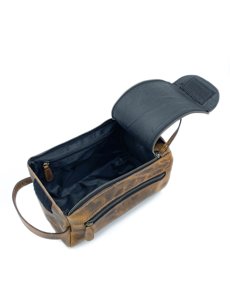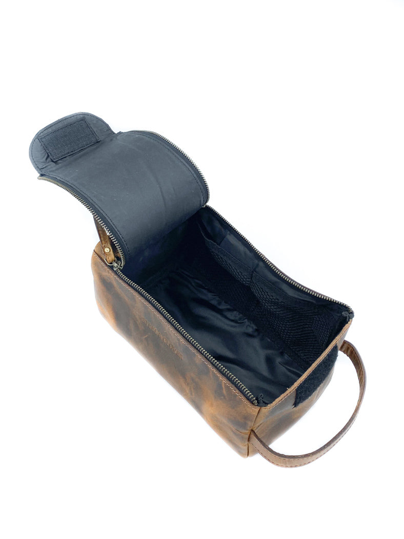 Hitting the road, Jack? You will not want to go without the RR30 Dopp Kit. Fashioned out of thick, full grain leather and designed with a soft frame, this toiletry bag is durable enough for the ‘long road’ and easily compactable into tight spaces, all the while maintaining its stately form.