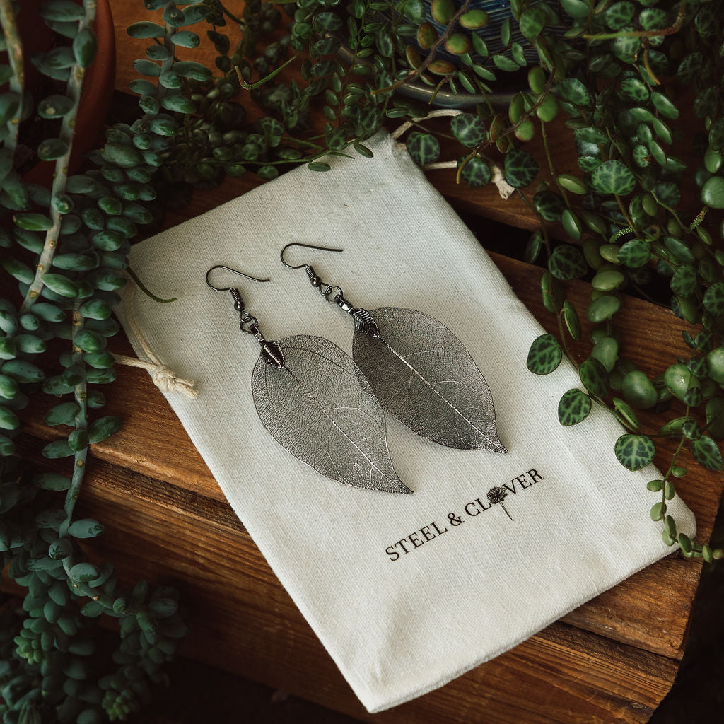 Silver Real Leaf Earrings