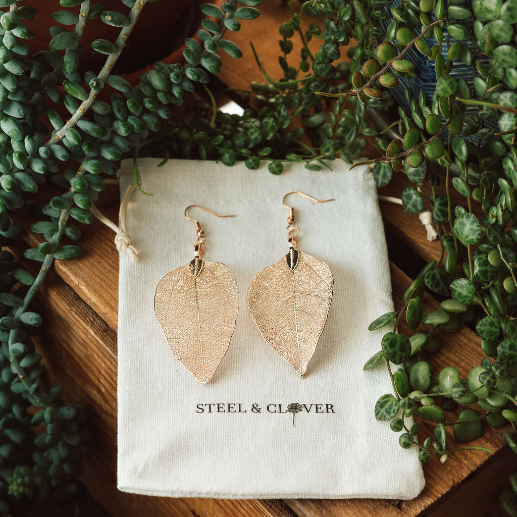 Rose Gold Real Leaf Earring