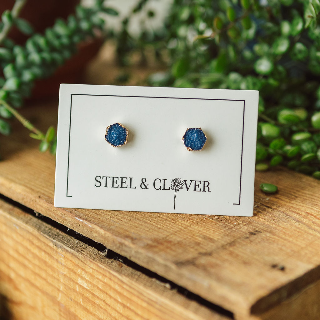 Eye catching resin surrounded by gold plating capture the light and make these earrings a stunning addition to any outfit.