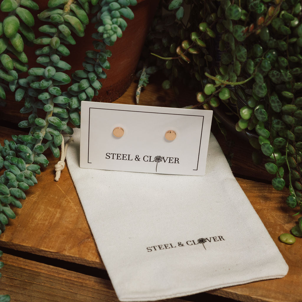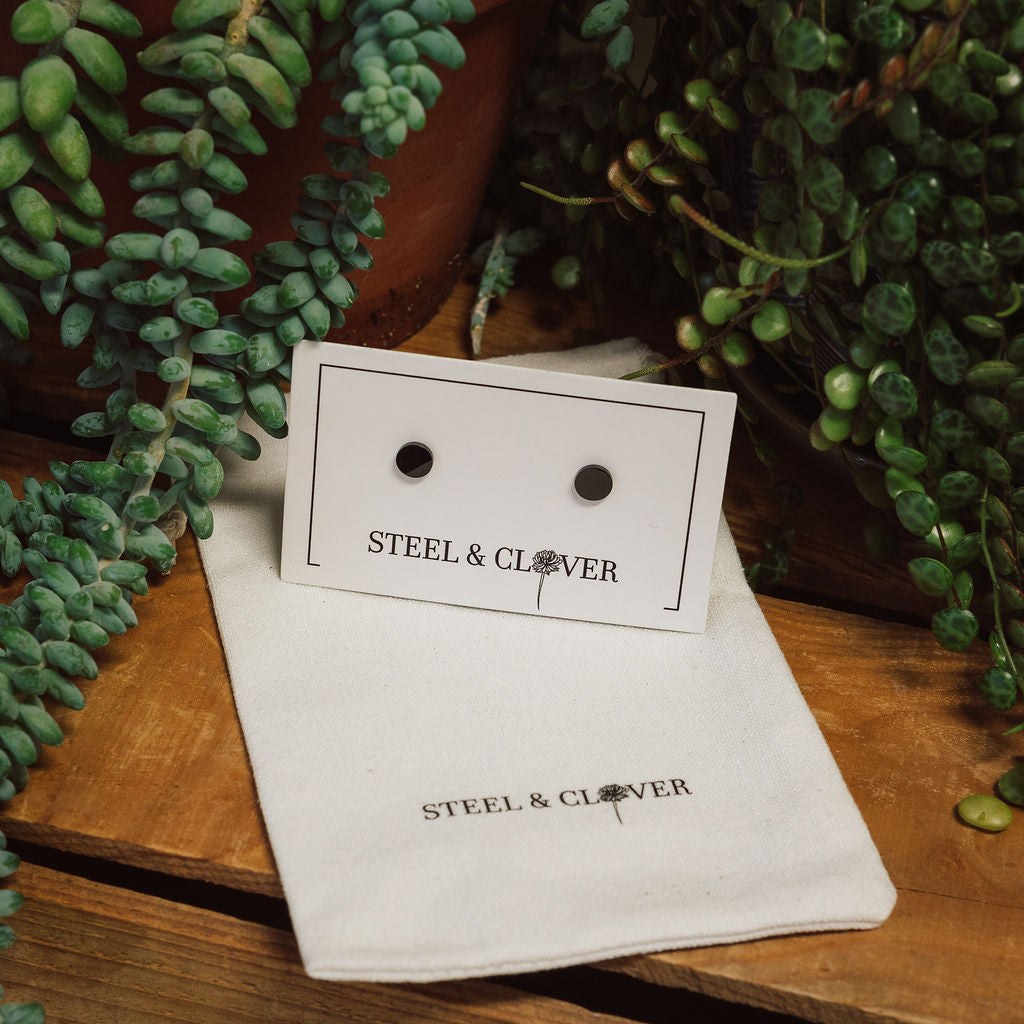 Minimal, understated and simply gorgeous. These studs are just the right amount of sweet on their own or to play a strong supporting role in a second piercing. Easy to love and easy to keep- they are available in Gold, Rose Gold, Silver and black.