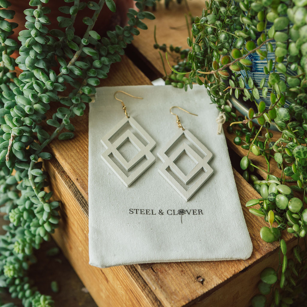 This original twist on the classic diamond shape makes these weightless earrings the perfect ‘go to’ piece for everyone’s collection. They are a must-have whether it's an errand running day or you have an outfit to complete for a night in the town.