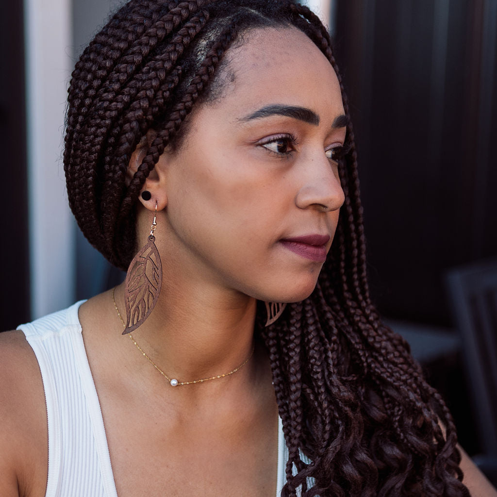 The elongated silhouette of these leaf inspired earrings make them the perfect tension between elegant and sexy. Their shape and embossed design create an airy frame that draws the eye back to the face, making you the focus of whatever it is that you have going on.