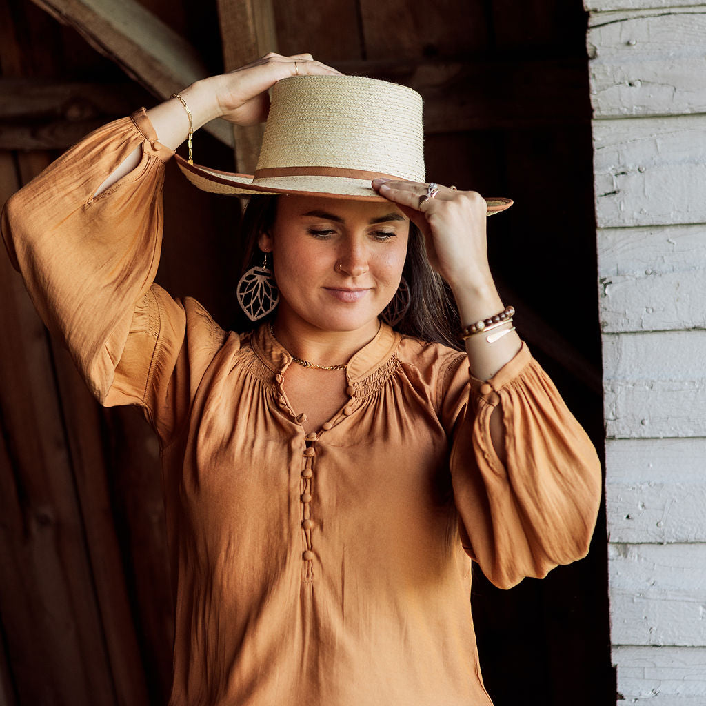 Enliven your outfits with the beautiful Worsley Wooden Earrings. These lightweight earrings combine a rustic wood design with a nod to a stain glass craftmanship, providing a perfect blend of style and comfort. An elegant easy-to-wear accessory with a prairie girl aesthetic.