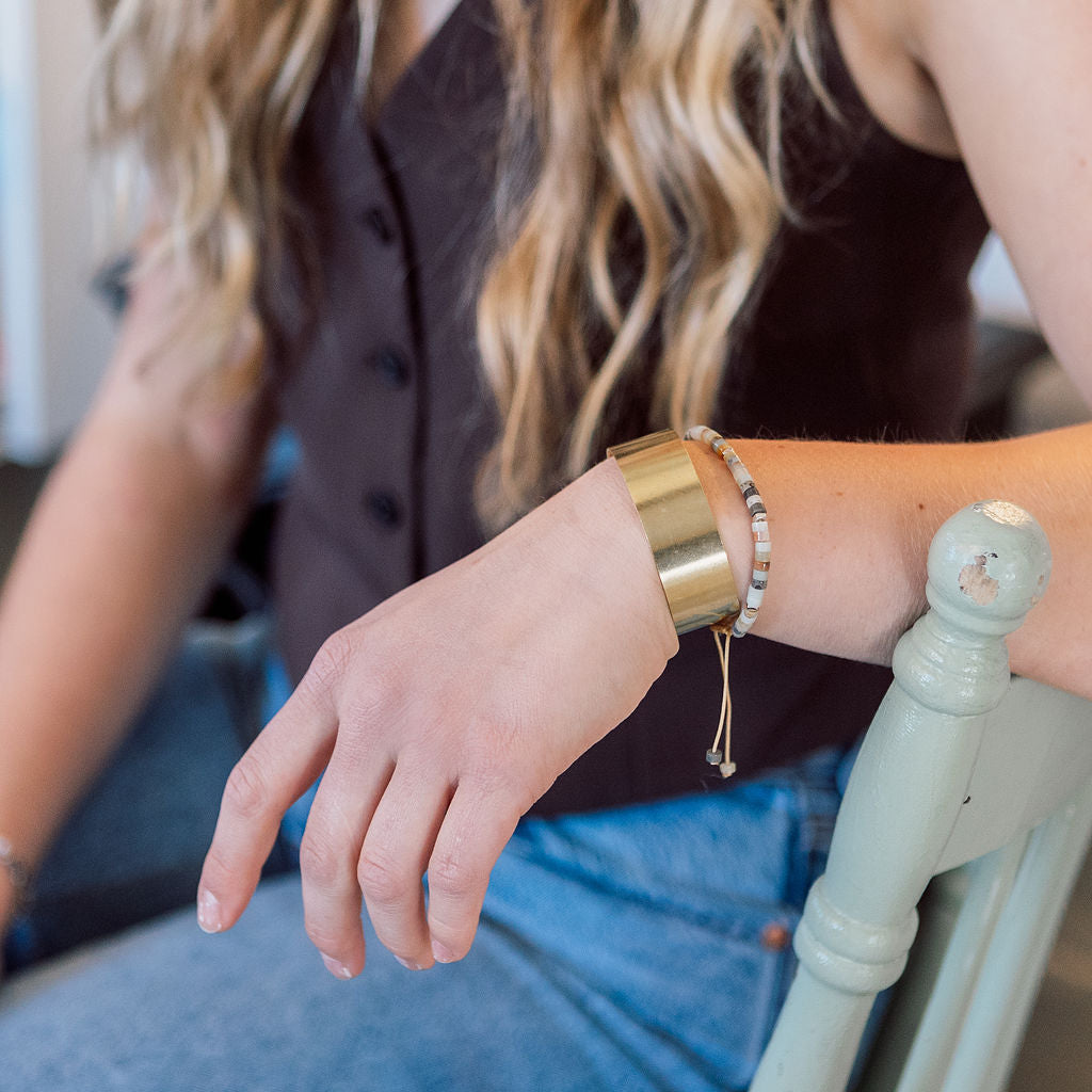 Inspired by the vast and untamed beauty of the prairies, the Buffalo Plains Brass Cuff embodies strength, resilience, and timeless elegance. Crafted from solid brass and measuring 0.75 inches wide, this cuff echoes the golden hues of sunlit plains. Whether worn alone or stacked, it’s a bold yet versatile piece that brings a touch of prairie heritage to your everyday style.