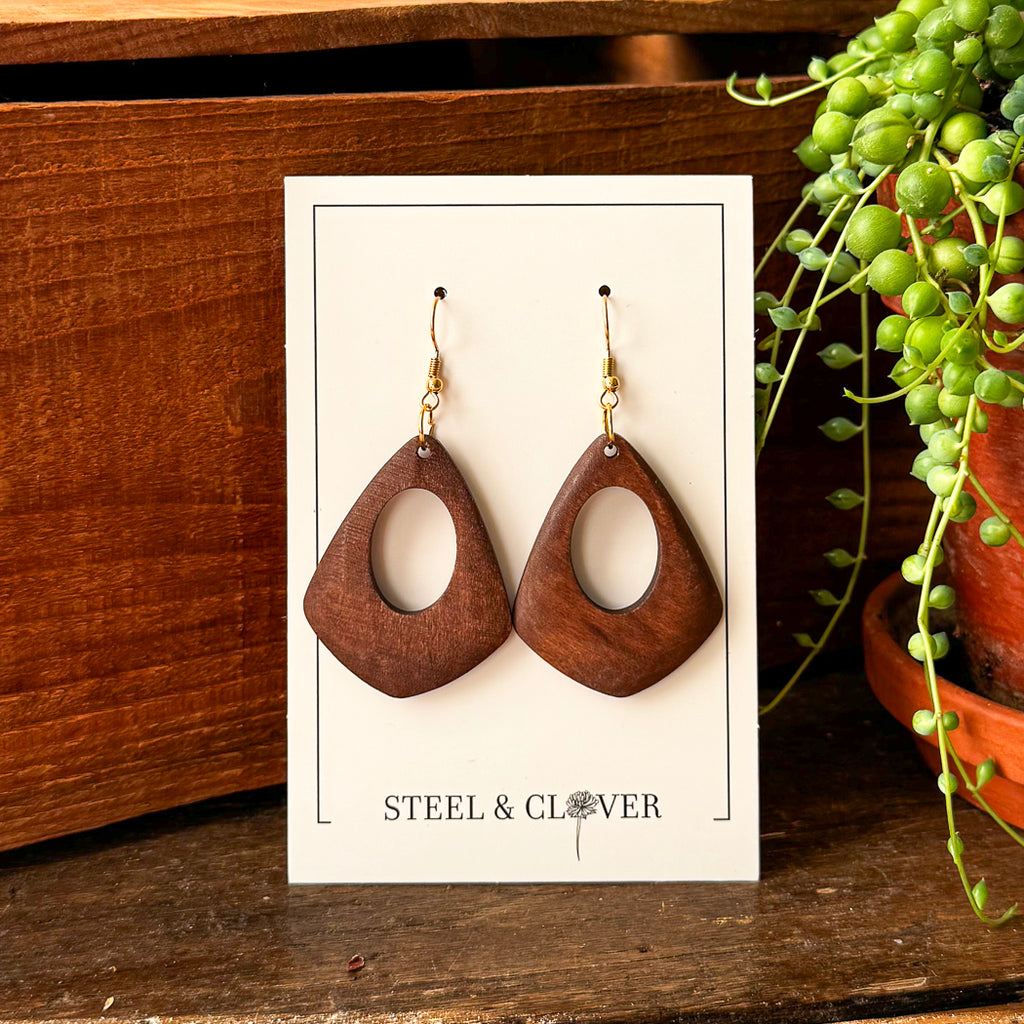 Simple, yet luxurious, the Musreau's stature and profile are a statement of mid century minimalism with a refined wood finish and deep bourbon tones. A classy way to embellish jeans and stilettos or a boho maxi.
